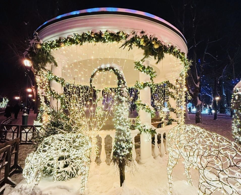 Jul- och nyårspyntning i bombade storstaden Charkiv, där man vägrar vika sig för de ryska fascisternas bombningar Foto: via Lena Wilderäng