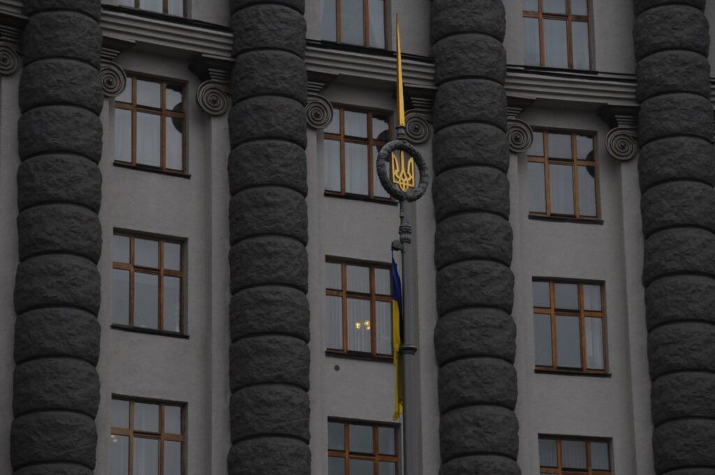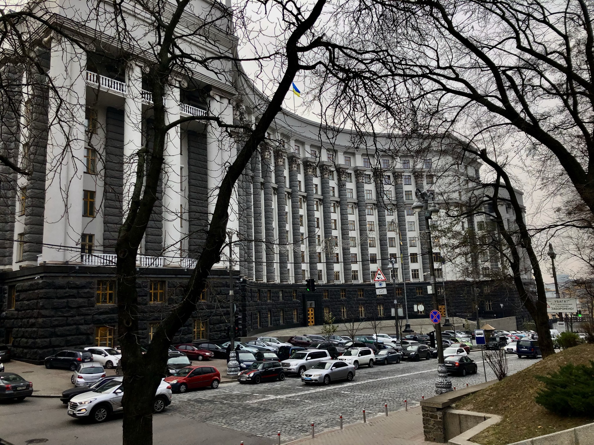 Regeringsbyggnaden på Hrusjevsyjgatan vid i backen upp från Europaplatsen i Kyjiv. Motsvarar Sveriges Rosenbad, fast med fler departement än svenska Statsrådsberedningen. Ligger likt Rosenbad med parlamentet tvärs över gatan.