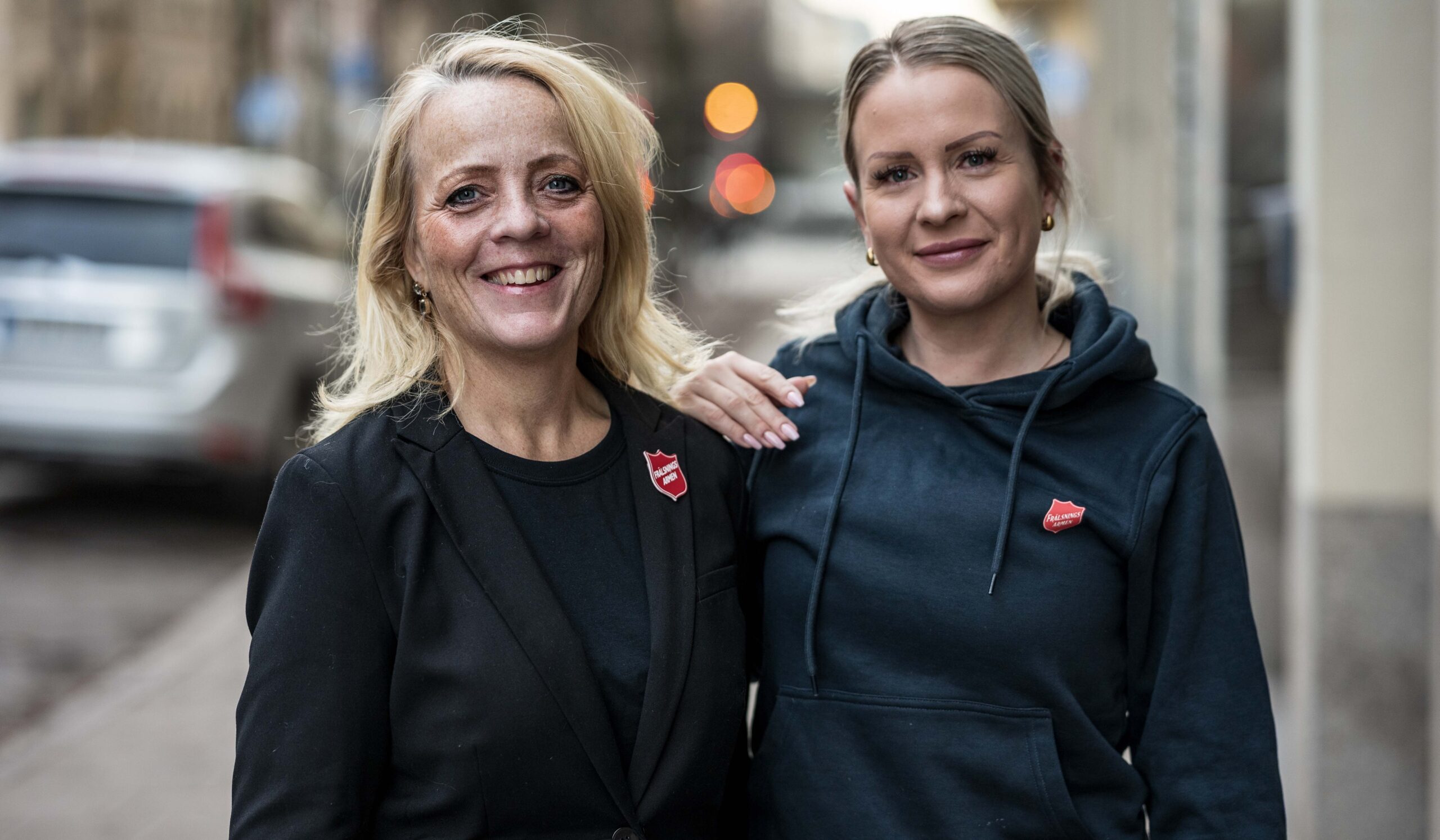 Frälsningsarmens Carolina Lövmark och Jenny Alm. Foto: Jonas Nimmersjö