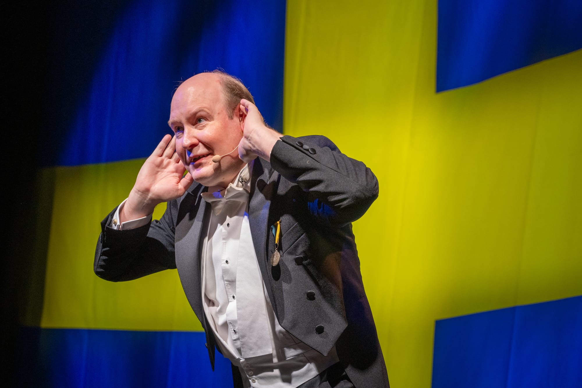 Högt blandas med lågt. Fniss, småskratt, flabb och flabb med applåd. Svenska värderingar, traditioner, historia och kultur omfamnas, nagelfars och förlöjligas. Regentlängder, dalahästar, furu, byråkrati, vikingar och frejdade stammar. Lustiga kostymer, löjliga dialekter och egendomliga namn som Jante Johansson, Birgitta Limhamn-Dragør och Gull-Fia Folkdräktsson. Finurliga ordvändningar, skarpsynta samhällskommentarer och nästan porträttlika karikatyrer av First Aid Kit, Jimmie Åkesson, Ulf Kristersson och Gunnar Strömmer. Henrik rusar runt på scen i permobil, Johan dränks i bajs och Vanna arrangerar litterära soaréer för barn mellan tre och nio år. Bland otaliga referenser når det högkulturella sin spets i en grundlig genomgång av svensk konstkanon: August Malmströms Grindslanten, Gustaf Cederströms Karl XII:s likfärd, Richard Berghs Nordisk sommarkväll, John Bauers Bland tomtar och troll och inte minst Carl Larssons Midvinterblot med Henrik Dorsin som konungaoffer i adamskostym.
