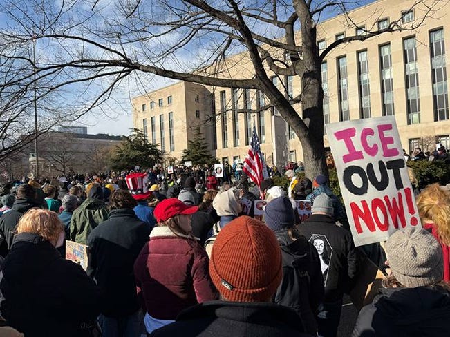 I USA:s huvudstad marscherar demonstranterna från ett torg nära Kapitolium till ICE huvudkvarter.
