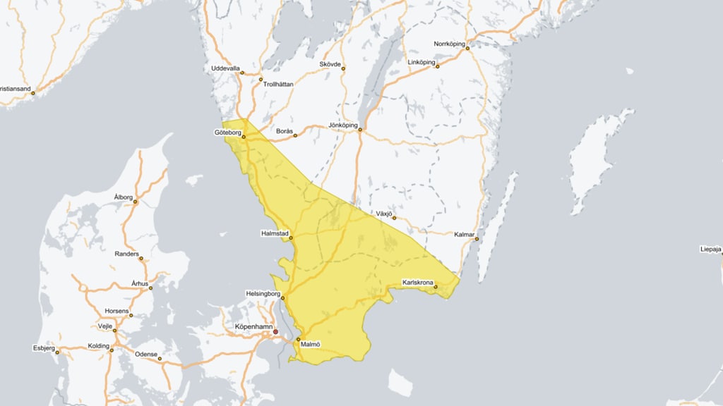 I Skåne och södra Halland börjar varningen gälla redan klockan 04 på tisdagsmorgonen, fram till lunchtid. I Halland och Göteborgsområdet gäller varningen mellan 12 och 18.