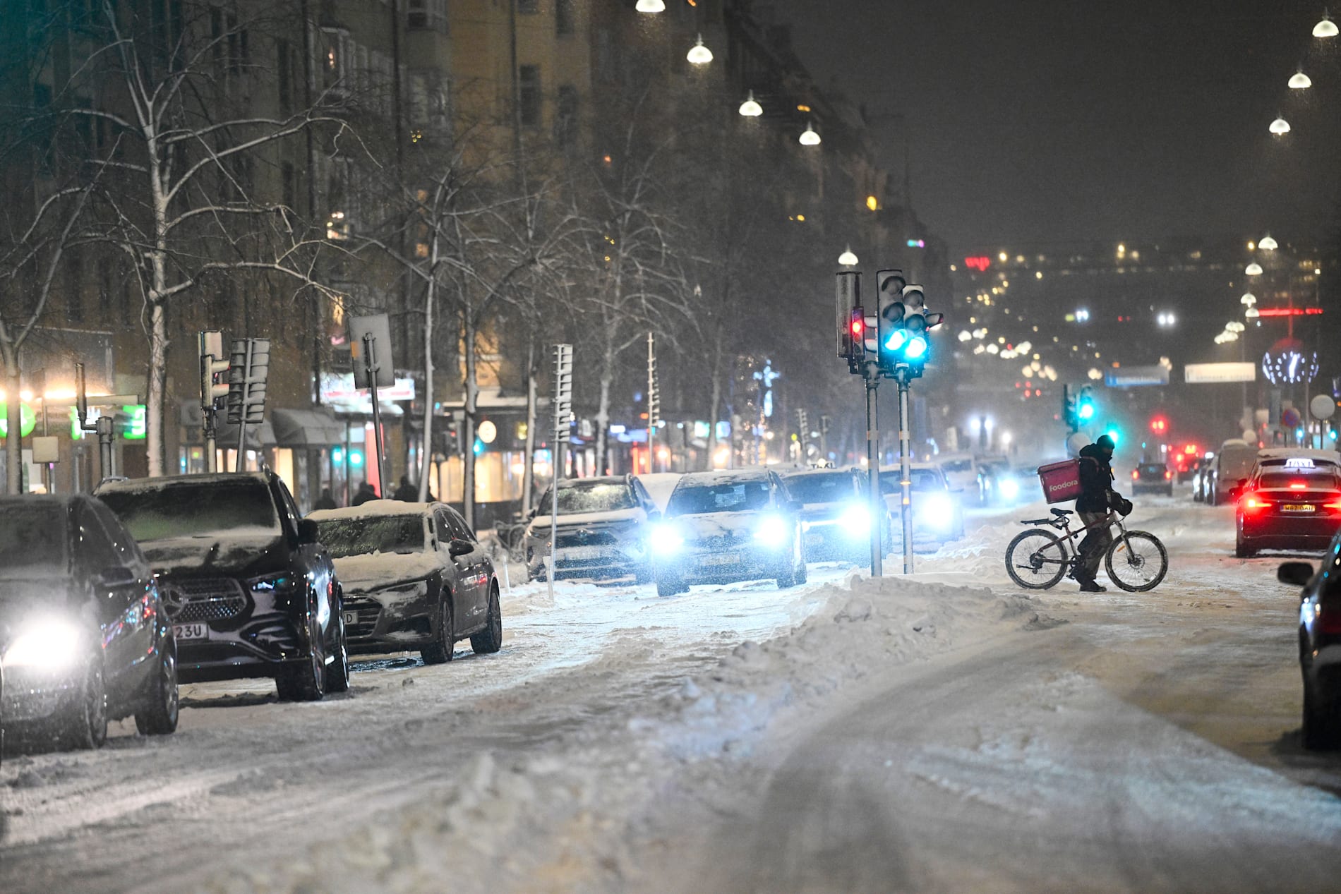 Blötsnö ger ”sliriga vägar” i Stockholm