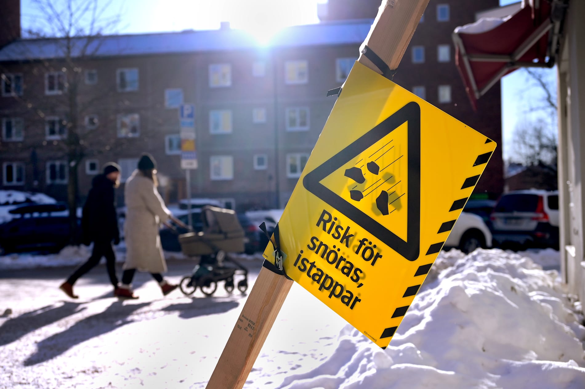 Fastighetsägare uppmanas att ta bort is och snö där det behövs samt sätta upp avspärrningar.