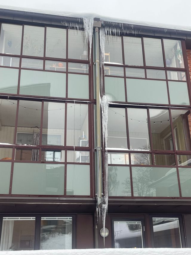 Istappar och snö kan falla ner och utgöra en fara för både människor och egendom.