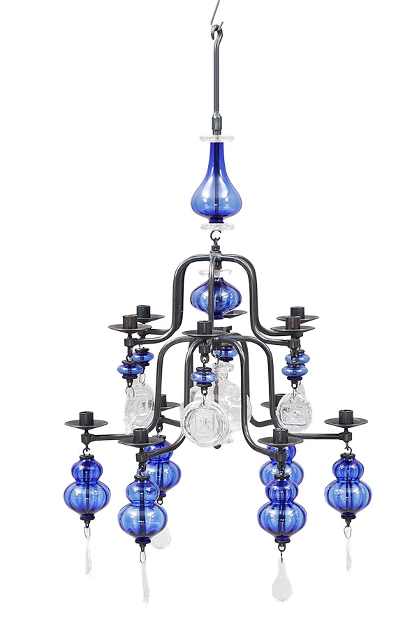 Ljuskrona. Redan under 1950-talet gjorde Erik Höglund enstaka ljuskronor i smide och glas för Boda. Men under 1960-talet började de serietillverkas hos Boda Smide. Just denna ljuskronan klubbades för 12 000 kronor hos Växjö auktionskammare.