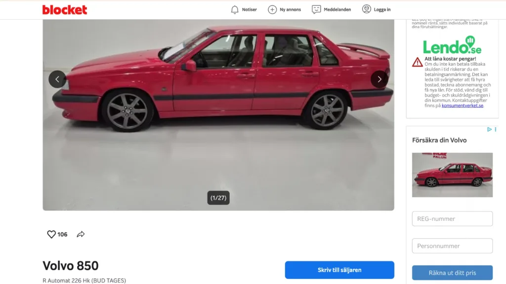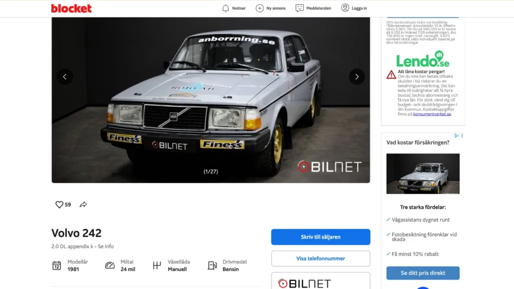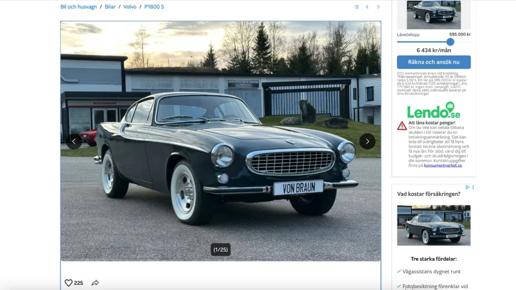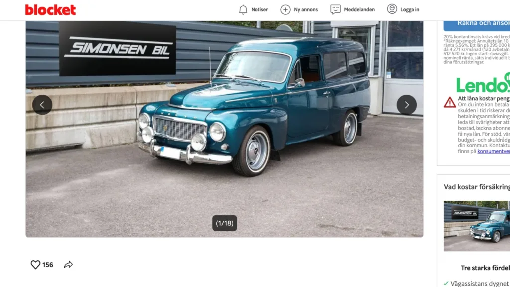 - Fakta: Renoveringen började långsamt innan 1990-talet och avslutades av nuvarande ägare 2023. Totalt har bilen nya delar för över 400 000 kronor, enligt annonsen. Bilen är i mint condition, alltså perfekt skick.