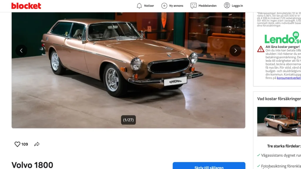 - Fakta: Denna Volvo 1800 S från 1965 började sitt liv som utställningsbil hos en återförsäljare i Luleå. Den grå lacken tillsammans med den röda inredningen får många Volvo-entusiaster att gå igång. Det gjorde även Sven Jönsson, som var bilens första ägare. Bilen har bytt ägare några gånger och säljs nu i Skene.
