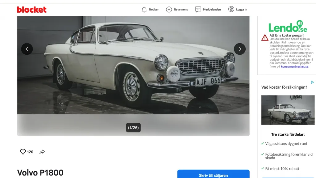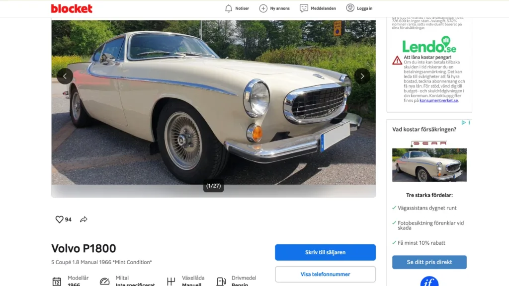 3. Volvo P1800 – Fullständigt renoverad, mintskick, exportmöjlig