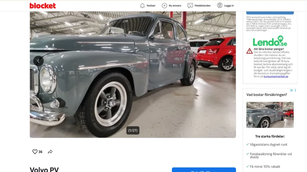 - Fakta: En klassisk Volvo PV med bara 35 mil på mätaren och glansig lack i ljusblå. Bilen säljs i Falun.