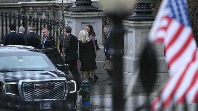 Danmarks utrikesminister Lars Løkke Rasmussen och Grönlands utrikesminister Vivian Motzfeldt höll presskonferens utanför den danska ambassaden i Washington. Det handlade om mötet de hade med USA:s vicepresident JD Vance och utrikesminister Marco Rubio tidigare under dagen.