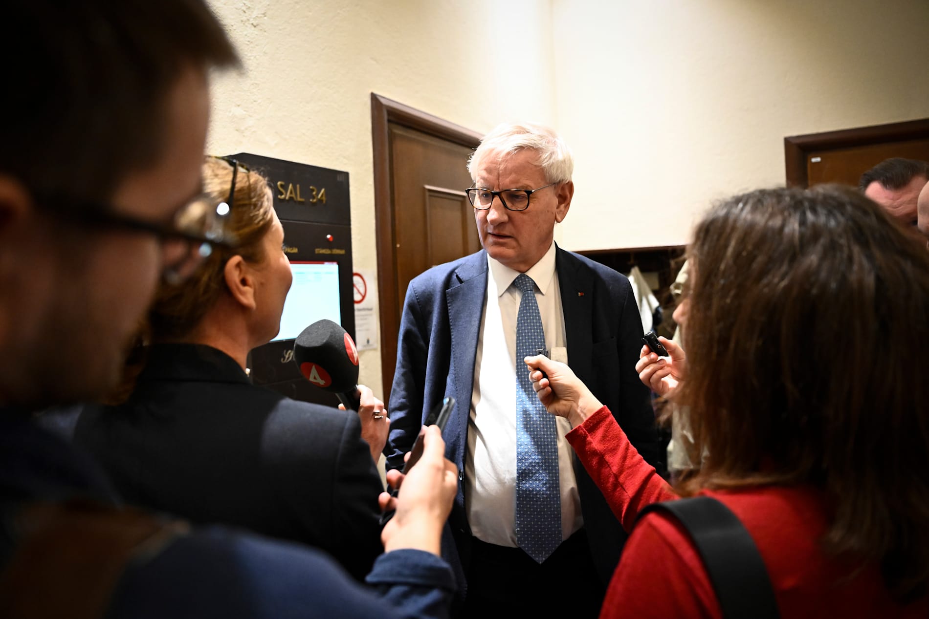helskärmchevron-rightnästaCarl Bildt intervjuas av journalister utanför rättssalen i Stockholms tingsrätt på torsdagen.