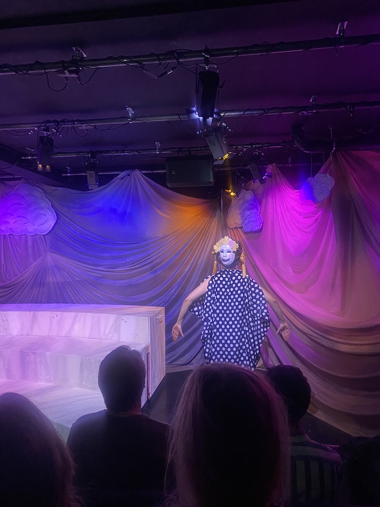 Dagen efter Hov1 byter jag folklighet mot präktighet och glider in på Teater Brunnsgatan 4 för att se Grekpjäsen. Jag är skakig och hoppas på en lugn föreställning där ingen skriker, men Fanny Lindstedt Grahn inleder med att gestalta en förlossning till tonerna av Lana del Rey.