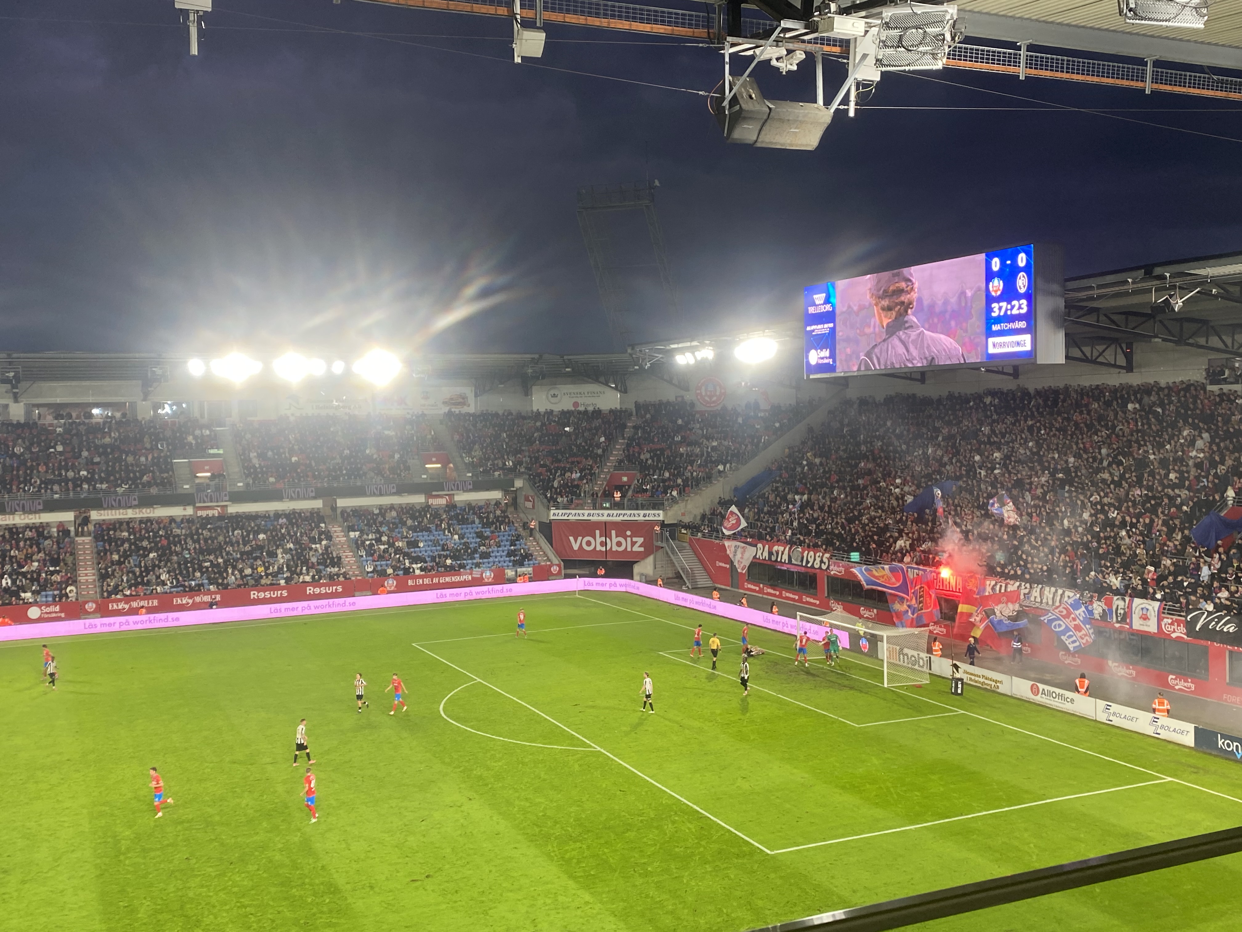 HIF:s tifo var riktigt snyggt – stort, samlat och tajmat precis när lagen kom ut. Det gav energi direkt och satte tonen för ett derby som kändes större än tabellen säger.
