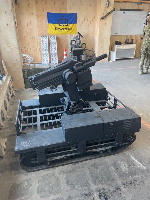 Någonstans i Ukraina sommaren 2025. Markdrönare monterad med kulspruta. Foto: Lars Peter Fredén