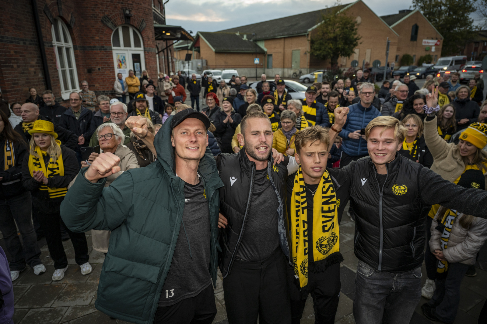 Guldhjältarnaanländer till stationen i Sölvesborg och möttes av många supporters Foto: Johan Nilsson / TT /