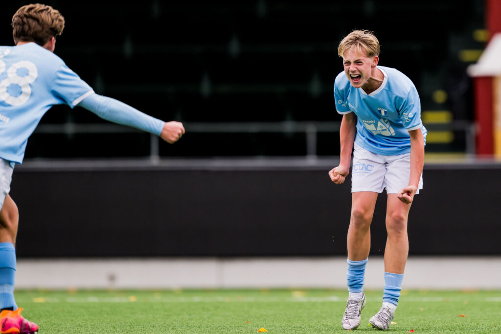 251030 Malmö FFs Edvin Trygg jublar efter 2-0 under finalen i P16 Allsvenskan mellan Malmö FF och Hammarby den 30 oktober 2025 i Malmö.