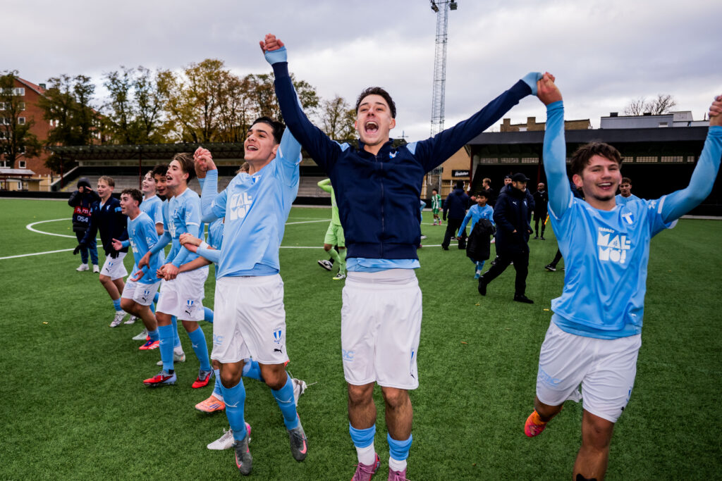 251030 Malmö FFs spelare jublar efter finalen i P16 Allsvenskan mellan Malmö FF och Hammarby den 30 oktober 2025 i Malmö.