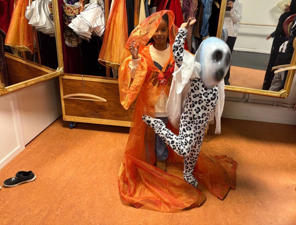 Att få prova precis den kostym man vill, utan att någon ropar “akta!” och “var försiktig!” får barnens fantasi att flöda. En kombination med spökmask, en klänning som varit med i baletten Svansjön, tillsammans med tåspetsskor fungerade utmärkt. Likaså en djurdräkt ihop med spökmasken.