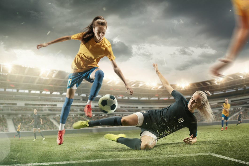 Bilden ska föreställa en genrebild över kvinnliga fotbollsspelare.