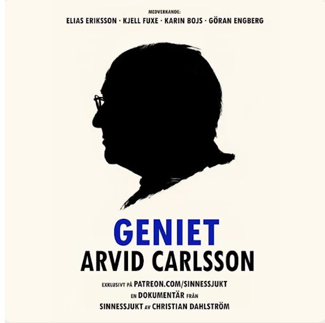 Christian Dahlström har med sin podcast »Sinnessjukt« byggt upp en plattform för några av den svenska psykiatrins mest framträdande röster. Inom ramen för den har han släppt dokumentären »Geniet«, där vi får berättelsen om Nobelpristagaren Arvid Carlsson. Dokumentären målar fint upp historiken kring Carlssons upptäckter med hjälp av flera röster som var med när det begav sig.