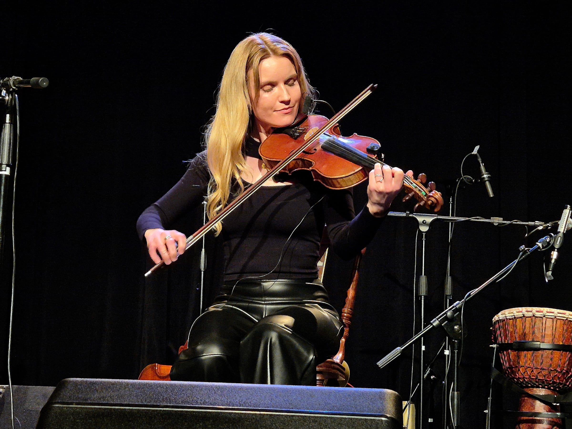 “Det blir rättvikspolskor rätt igenom, hoppas ni står ut med det” säger Falubördiga Järvsöstintan Anna Ekborg (Northern Resonance) när hon sätter sig i salongen med sin fiol. Med en bitande klang i stråken tar hon intryck av gamla spelmän och låter gamla folklåtar bli något eget. Hon leker med drillar och rytmer, förskjuter pulser och låter fraser vandra in och ut ur varandra. För ett otränat öra som mitt kan det kännas en aning krävande, harvande och diffust, men det är uppenbart att hon kan sin sak.