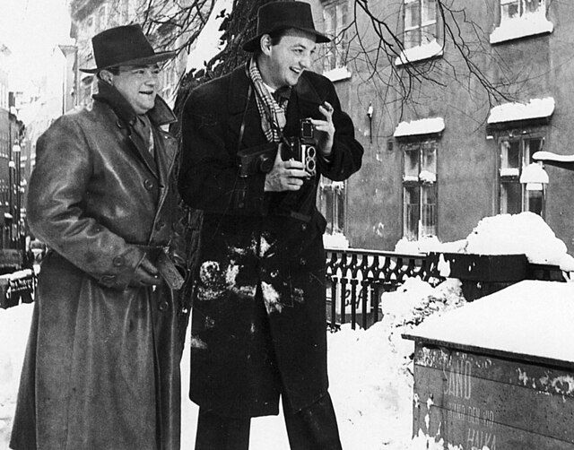 Författaren Stieg Trenter (vänster) med sin vän fotografen K. W. Gullers, förlaga till deckarhjälten Harry Friberg. Foto: Wikimedia Commons