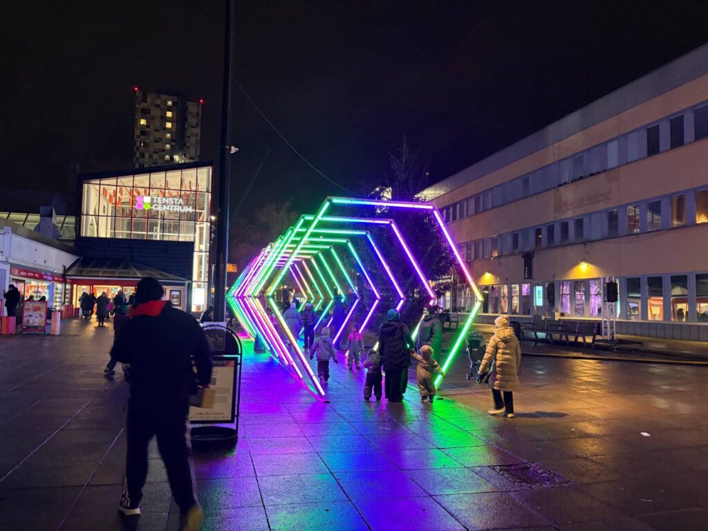 Uppe i Tenstagången fanns flera ljuskonstverk. Den långa tunnel som lystes upp i olika färger såg ut att vara barnens favorit.