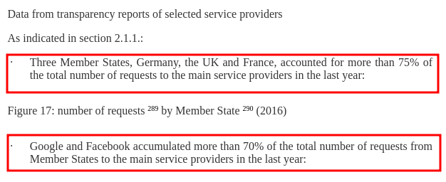Moreover, these numbers are inflated by 3 EU states forming 75% of the total requests : UK, France and Germany. In addition, 70% of the total requests were sent to Google and Meta (Facebook at the time).