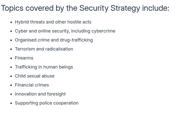 Outside of external threats, the EU is developing several measures for internal protection from various criminal realities of relevance according to the EU.