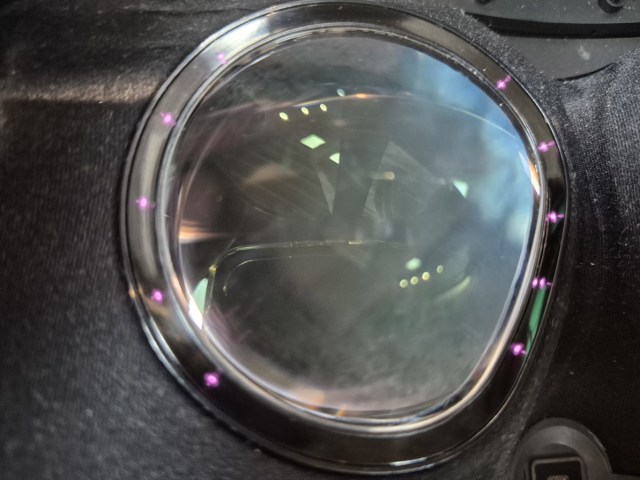 The lenses of the headset, with the eye tracking system