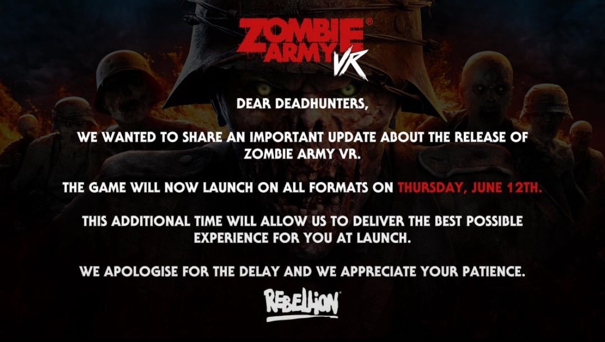 Rebellion announced that Zombie Army VR, its first VR entry into the storied Zombie Army co-op shooter franchise, has been delayed to next month.