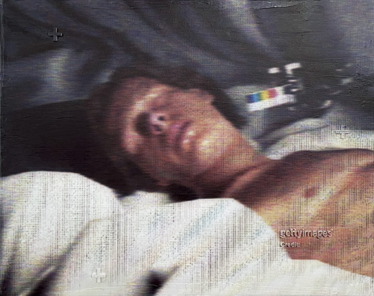 Lehner’s new works pivot on compositions derived from historical paintings, supplanting peasants with avatars summoned from the depths of the manosphere. In this world, Patrick Bateman – a regularly transmutating protagonist in Lehner’s oeuvre, seeded from Christian Bale’s portrayal of the character in American Psycho – is an aspirational male archetype, both aesthetically and behaviourally. Bateman’s character has evolved from an internet meme into a symbol and role model within the incel communities, embodying their ideals of how a man should treat women and navigate the world around him.