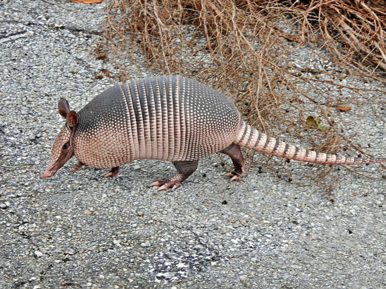 The armadillo mom certainly had her hands full — though, in the end, says Walding, she was able to shuffle all seven babies safely across the road.