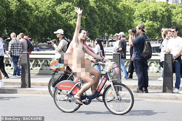 They’ll be saddle sore in the morning! Naked cyclists take to London’s streets to protest against car culture (but police asked them to stay clothed if they got near King Charles)