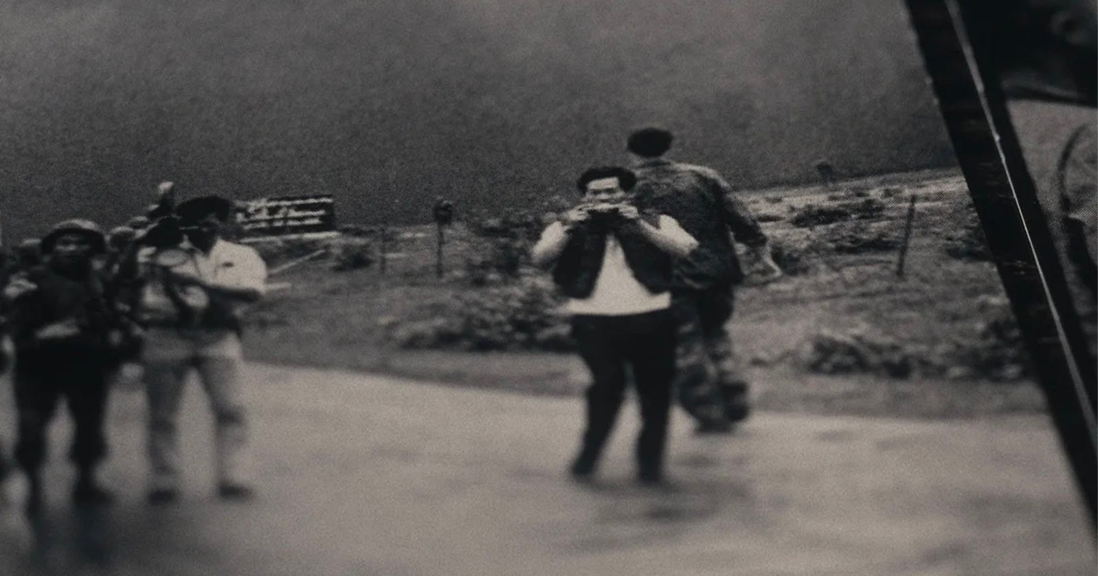 A still from The Stringer that shows freelancer Nguyen Thanh Nghe at the scene of Napalm Girl.
