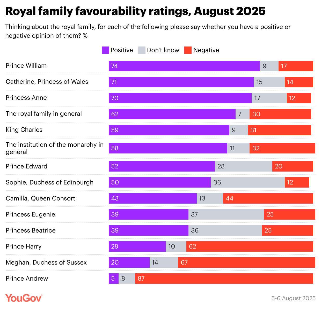 YouGov royal family poll released on August 8, 2025 (Photo: YouGov Twitter account)