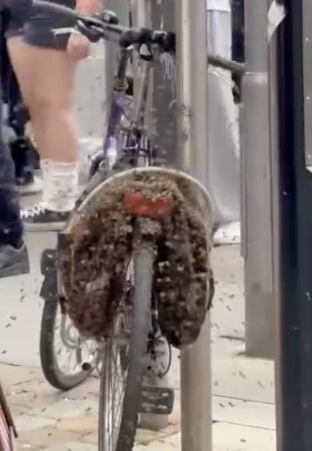 The bike had been left on a bustling street when a “cloud” of the insects suddenly enveloped it.