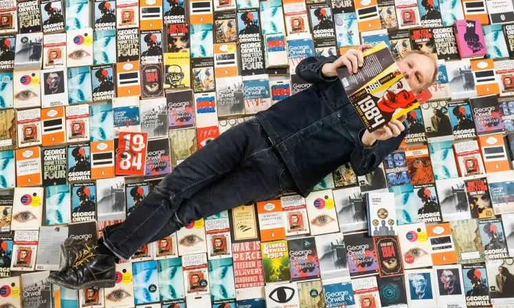 The project did not stem from any particular expertise in the work and life of Orwell (though he has since built up a lot of knowledge via the project). The initial spur was when he discovered they had four copies of the book among his possessions. It made him reflect that there must be some meaning to this. Having so many copies also illustrated that “the book is everywhere”, with many owning copies. It’s also everywhere in our culture (take TV programmes such as Room 101 and Big Brother), as are the concepts and themes of the book, such as ‘double-think’ and the power of propaganda. The world of smartphones, CCTV and facial recognition has again brought fears of the surveillance society, outlined in 1984, to the surface. Widespread fears about a backslide towards ‘anocracy,’ a transitional stage of government between democracy and autocracy in democratic states, has also brought Orwell to the fore.