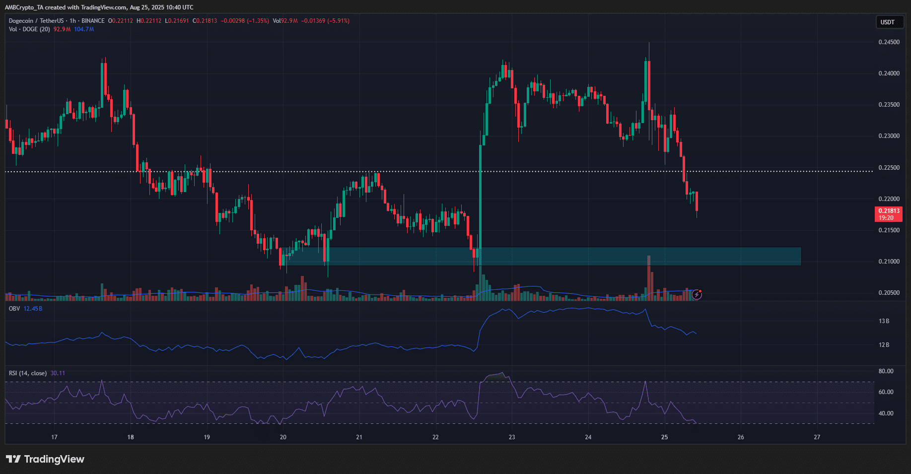 Given the bearish momentum and selling pressure in recent hours, it seemed likely that the leading memecoin could retest the $0.21 support zone.