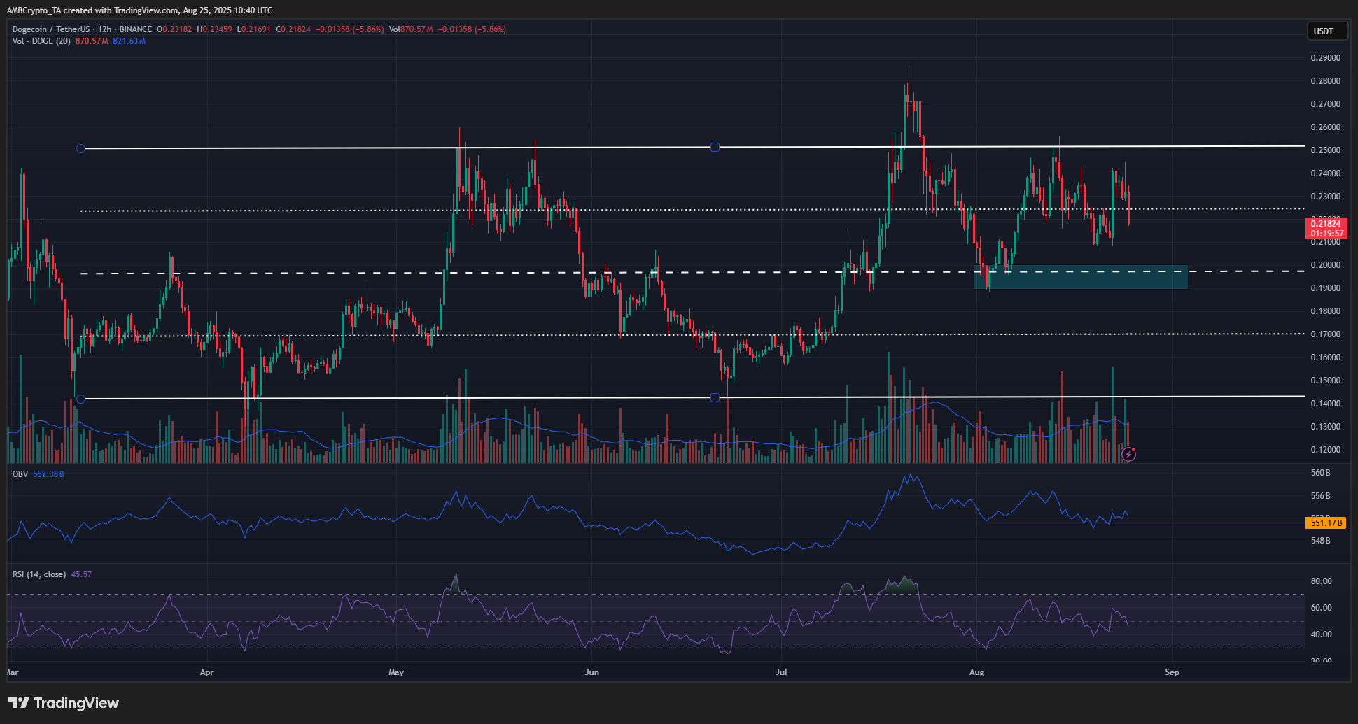 In fact, a retest of the $0.20–$0.21 range could still pave the way for a rebound, if buyers step back in.