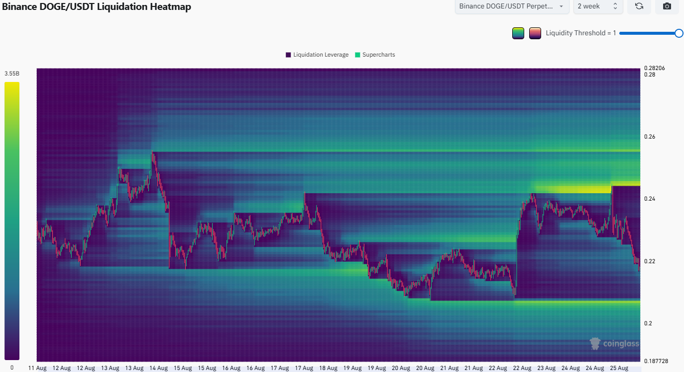 The 2-week Liquidation Heatmap showed that $0.24 was a strong magnetic zone. Once swept, it triggered a bearish reversal.