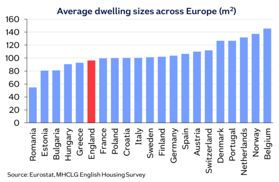 Compared to the European Union, where the average dwelling size is 103 square metres, English homes are generally smaller. Notably, countries such as the Netherlands, Norway, and Belgium have larger average properties, while eastern European countries tend to have smaller homes.