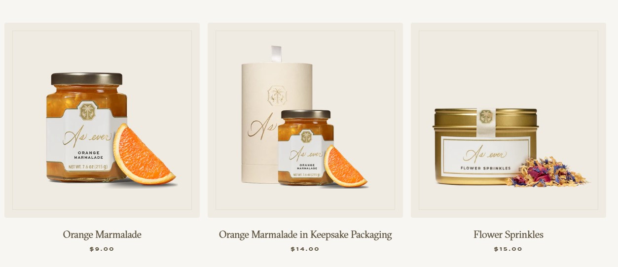 Also, where is the information about the “many more new offerings”? Sure, the site offered a new marmalade, including a version in keepsake packaging, but that was the only new product.