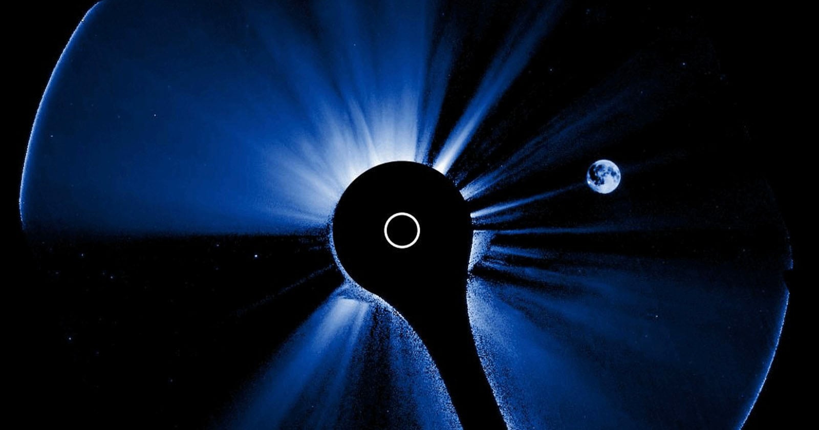 A coronagraph captured this sublime image of the Moon crossing the Sun’s path.
