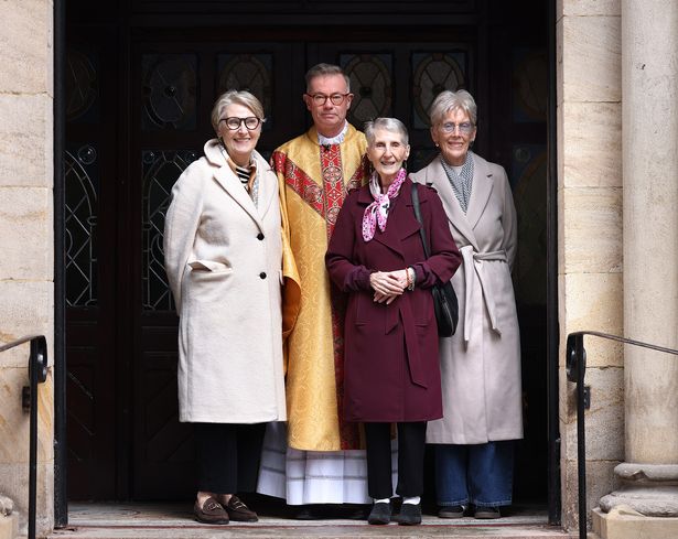 From left, Sheila French, Patricia Berry and Mary Neild with Monsignor Anthony Kay(Image: Manchester Evening News)