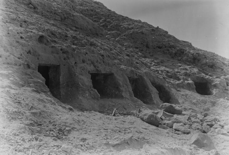 Rock cut tombs at Nuwayrat enclosing the pottery vessel containing the pottery coffin burial.