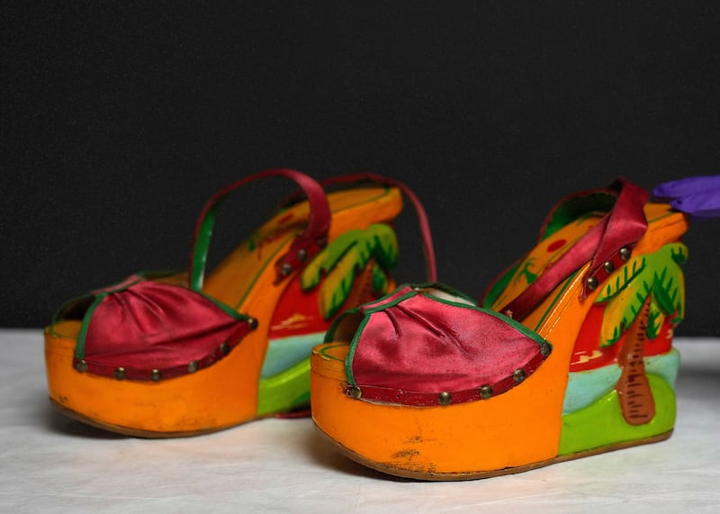 A pair of shoes wore by David Bowie on Ziggy Stardust in 1972 are on display during a press preview at the David Bowie Centre, a new archive at the V&A East Storehouse in London, Wednesday, Sept. 10, 2025, ahead of its public opening on Saturday. (AP Photo/Joanna Chan)