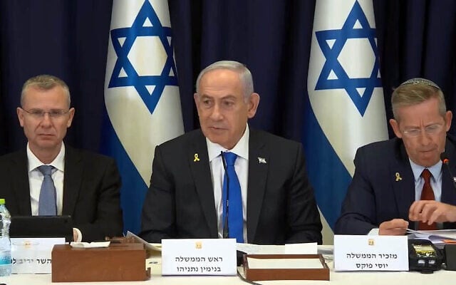 Prime Minister Benjamin Netanyahu leads a cabinet meeting in Jerusalem on September 7, 2025. (GPO/screenshot)