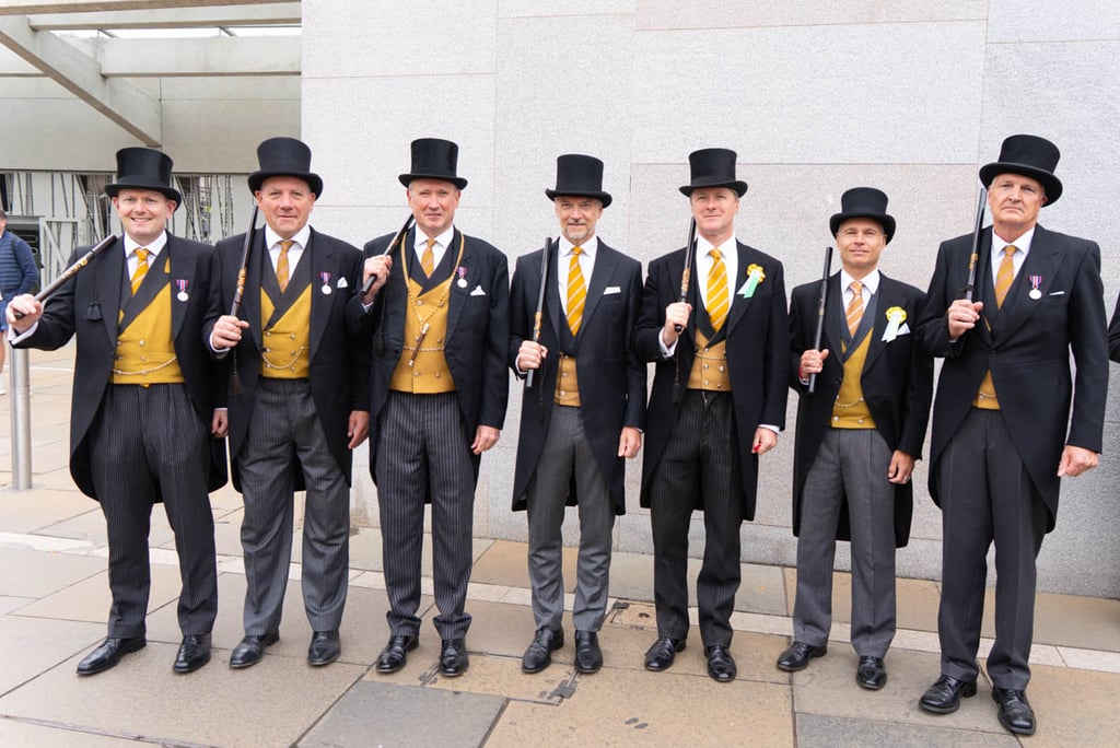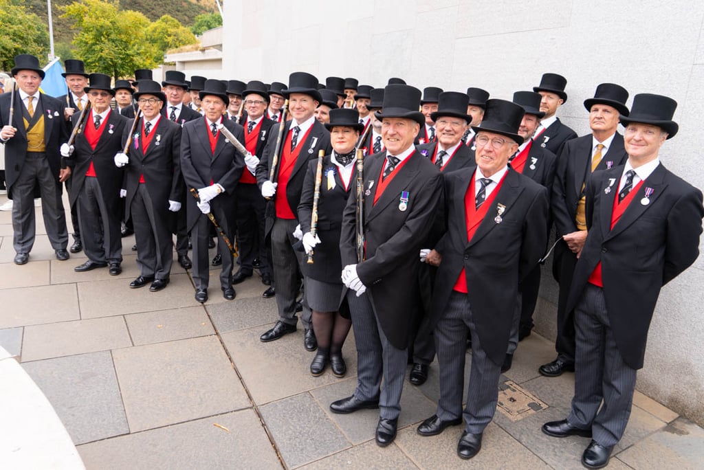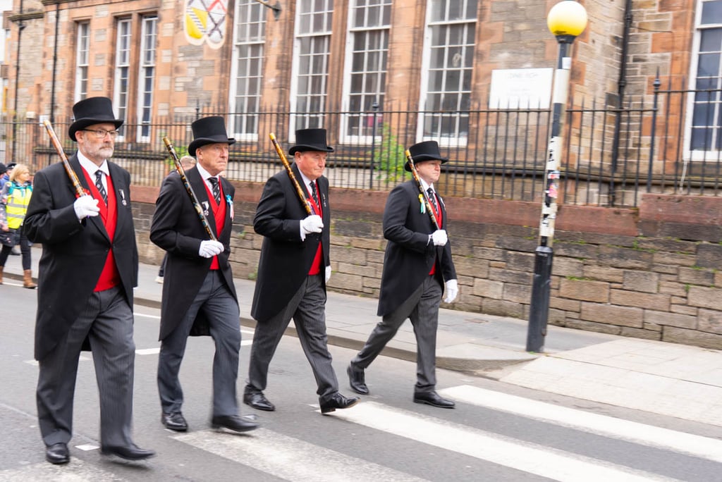 The Society of High Constables of Edinburgh wearing their new red waistcoats accompanied the procession along with The High Constabulary of the Port of Leith who wear gold waistcoats.